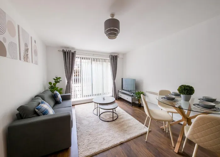 Das Modern City Apartment For 5 - Near Train verfügt über Annehmlichkeiten für Selbstversorger wie komplette Küche und bietet außerdem einen Essbereich, in der die Gäste entspannt ihre Mahlzeiten einnehmen können. Die Bushaltestelle Birmingham Coach liegt in unmittelbarer Nähe von diesen Unterkünften.